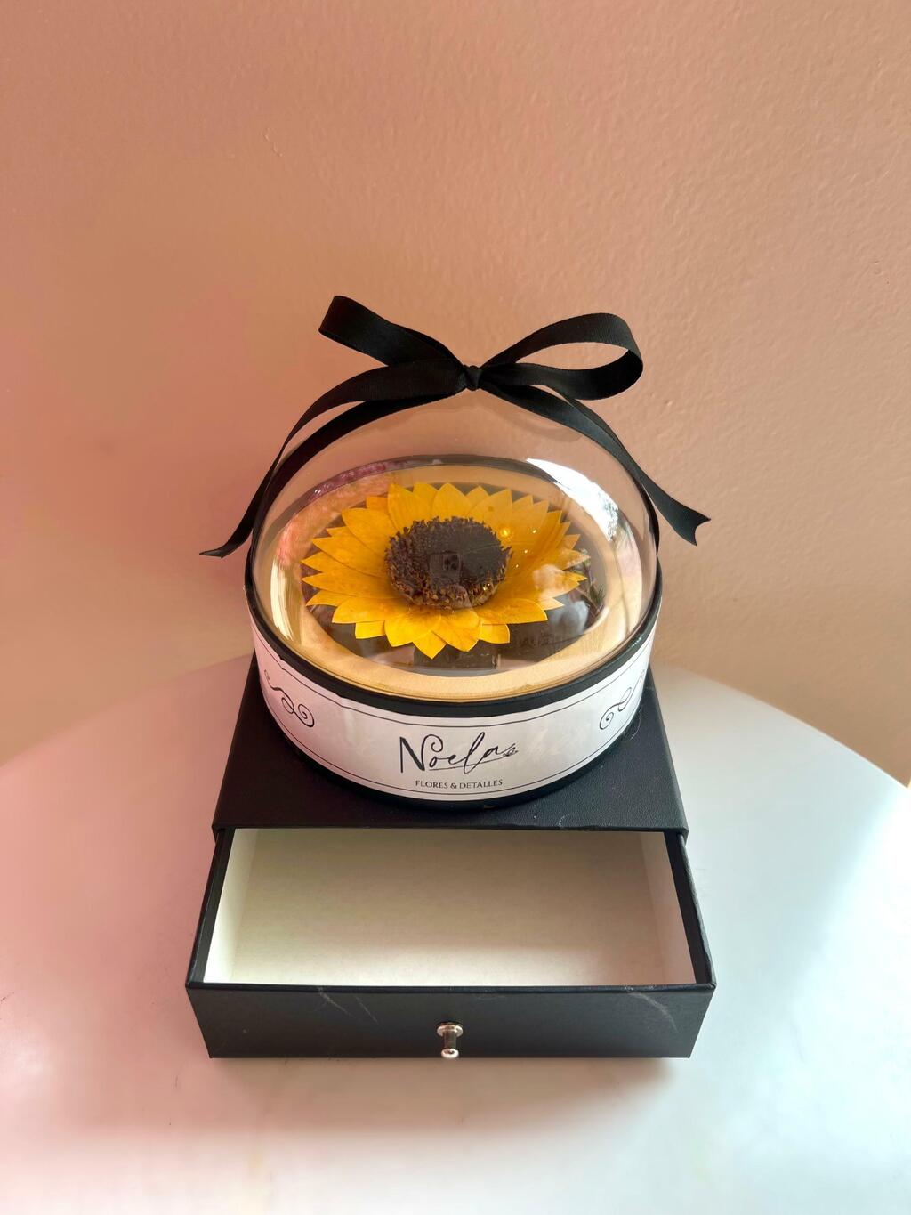 Girasol preservado tamaño pequeño en cofre con cupula de acrílico
